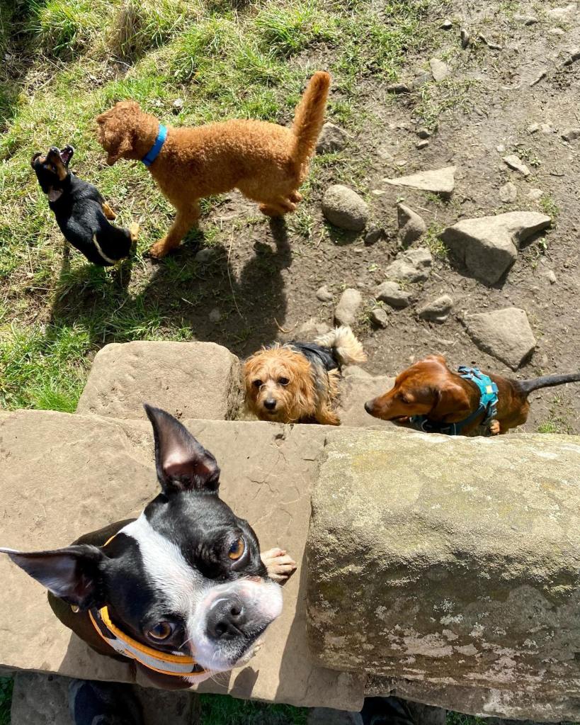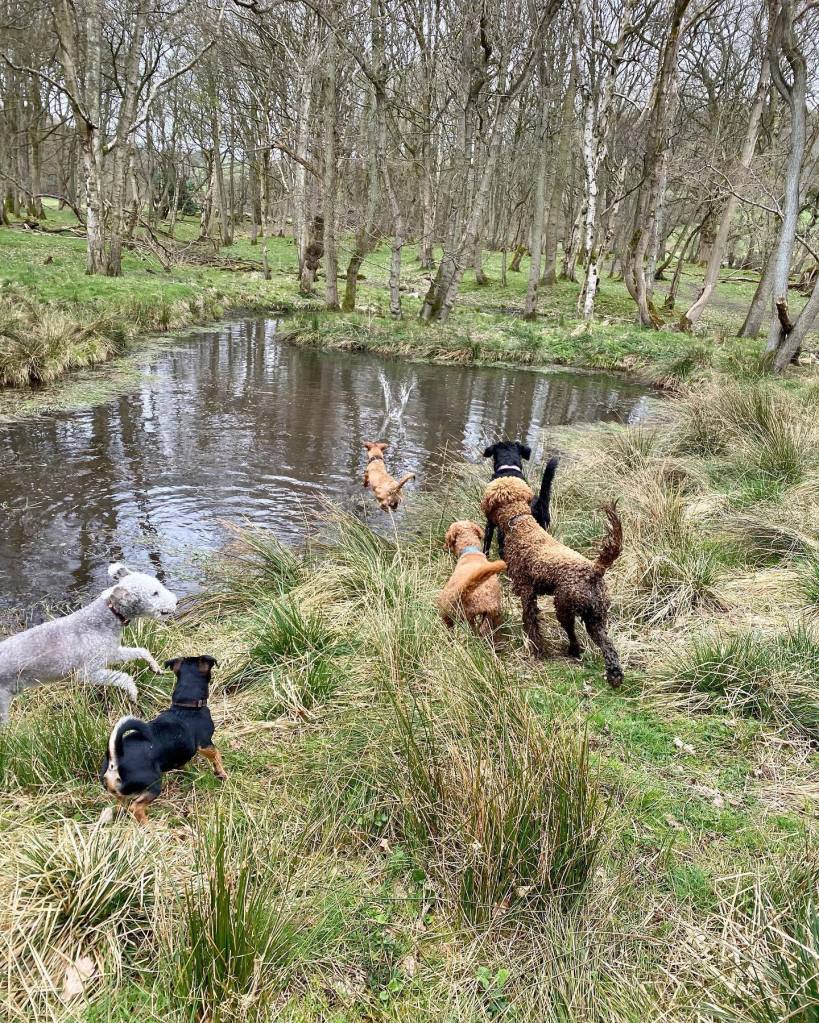 We pick up and drop off your pooch. 1 full hour out walking, running, playing and shaking their tail about.